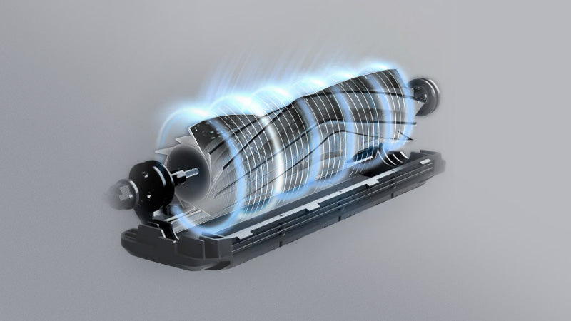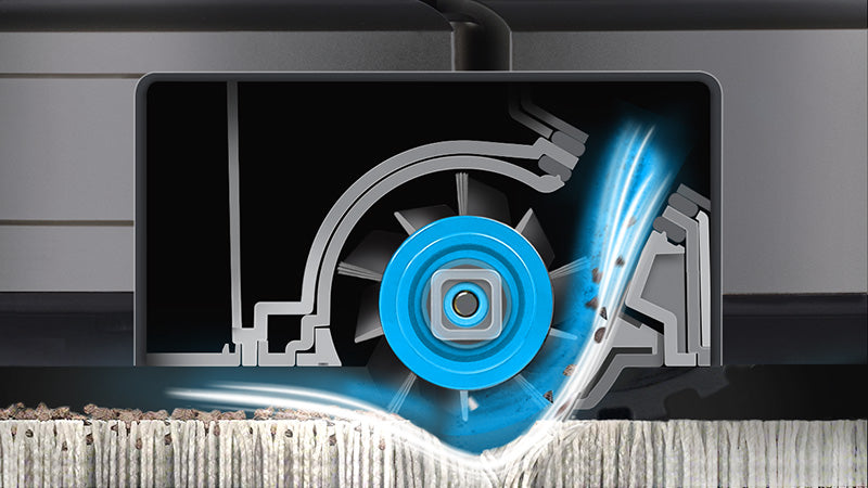 La camera di aspirazione sigillata in modo intelligente consente all'aria di penetrare tra le fibre del tappeto e di aspirare anche lo sporco e la polvere profondamente radicati. La potenza di aspirazione è quasi doppia, raggiungendo così un'efficacia significativamente superiore sia sui tappeti che sui pavimenti lisci.