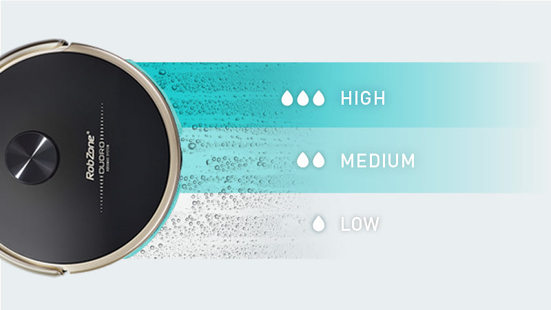 Puoi semplicemente impostare con un clic nell'app mobile l'intensità di inumidimento del mop desiderata. In questo modo, puoi lavare pavimenti più sporchi con un mop più bagnato e utilizzare un'intensità di inumidimento ridotta su superfici delicate come il legno.