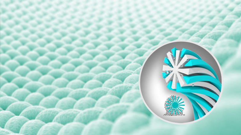 Il tessuto del mop è realizzato in microfibra a filamenti divisi per massima assorbenza delle impurità. Durante la pulizia, lo sporco non rimane sulla superficie come con altri materiali, ma le impurità vengono bloccate all'interno delle fibre, permettendo solo all'acqua pulita di passare in superficie.
