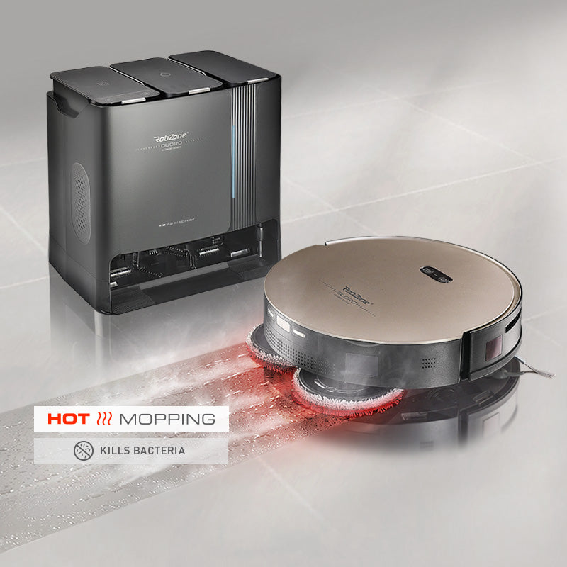 Una novità assoluta è il lavaggio con acqua calda anche durante la pulizia. La maggior parte dei modelli offre solo il risciacquo dei panni con acqua tiepida, ma durante la pulizia utilizza acqua fredda per inumidirli. Duoro X-Comfort XL HOT riempie il suo serbatoio interno con acqua calda, che utilizza per tutta la durata della pulizia. In questo modo rimuove efficacemente anche lo sporco ostinato e il grasso.