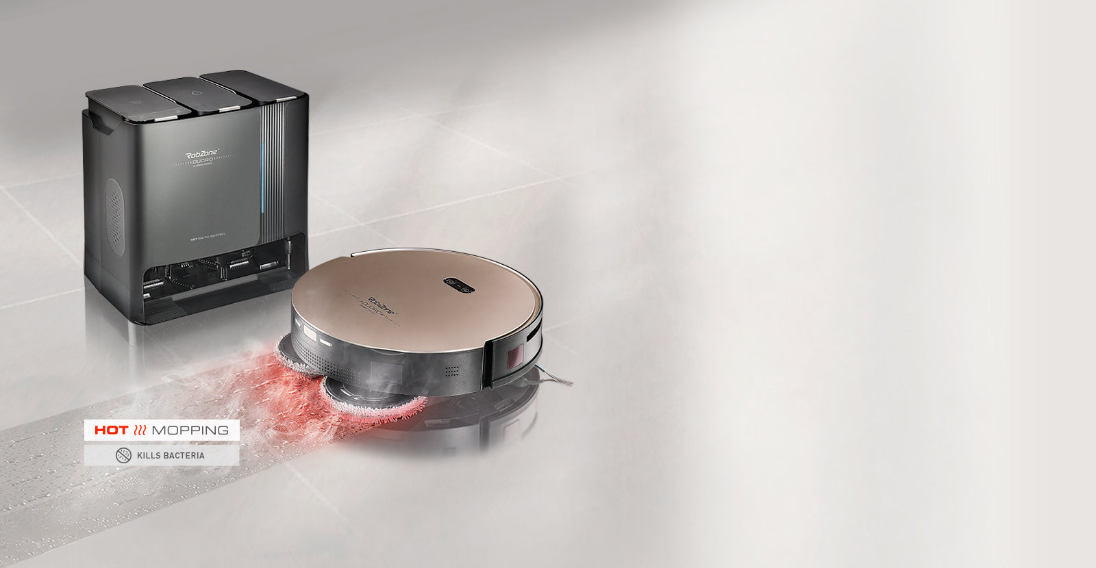 Lavare con acqua calda garantisce la rimozione anche dello sporco più ostinato dal pavimento. Un sistema di lavaggio unico, il più vicino possibile alla classica pulizia a umido dei pavimenti. La stazione di lavaggio riscalda l'acqua fino a 60 °C. Durante il lavaggio, il mocio rimuove sporco e microrganismi, e il pavimento lavato sarà igienicamente pulito.