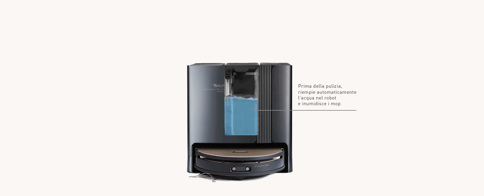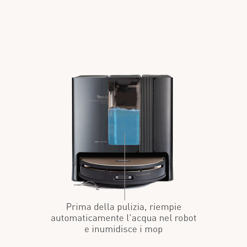 La stazione All Comfort XL è dotata di serbatoi per acqua pulita e sporca con una capacità di 4 litri, garantendo un lavaggio completamente automatico e un comfort d’uso massimo per periodi ancora più lunghi. Durante la pulizia, i panni SI LAVANO DA SOLI più volte nella stazione con acqua calda e pulita, e al termine del ciclo si asciugano con aria calda. Anche l’acqua calda pulita nel serbatoio del robot viene rifornita automaticamente, garantendo una pulizia continua ed efficace dei pavimenti.Potete personalizzare l’intensità del lavaggio e l’intervallo di lavaggio dei panni in base al tipo di pavimento e al livello di sporco.