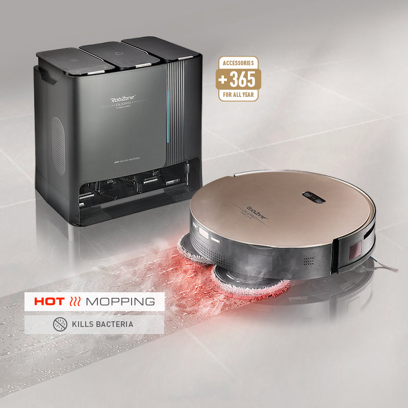 Una novità assoluta è il lavaggio con acqua calda anche durante la pulizia. La maggior parte dei modelli offre solo il risciacquo dei panni con acqua tiepida, ma durante la pulizia utilizza acqua fredda per inumidirli. Duoro X-Comfort XL HOT riempie il suo serbatoio interno con acqua calda, che utilizza per tutta la durata della pulizia. In questo modo rimuove efficacemente anche lo sporco ostinato e il grasso.