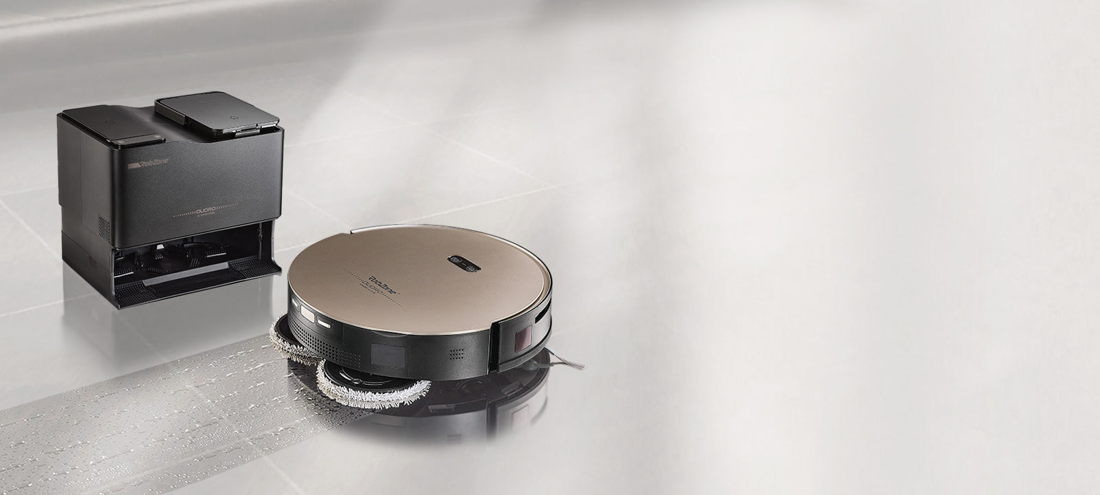 Quando rileva un tappeto, solleva automaticamente i mop fino a 15 mm dal pavimento e attiva l'aspirazione turbo.