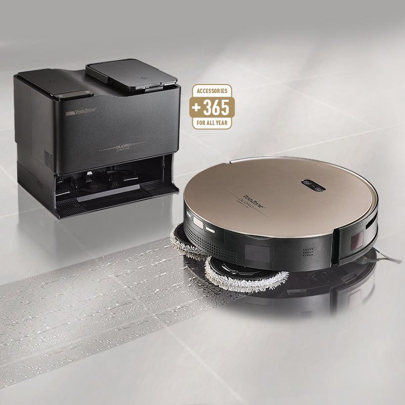 I mop rotanti ad alta velocità si occupano di un lavaggio approfondito su tutti i tipi di pavimenti lisci. Grazie a una forte pressione di 10N contro il pavimento, equivalente a circa 1 kg, riescono a rimuovere anche le impurità più ostinate.