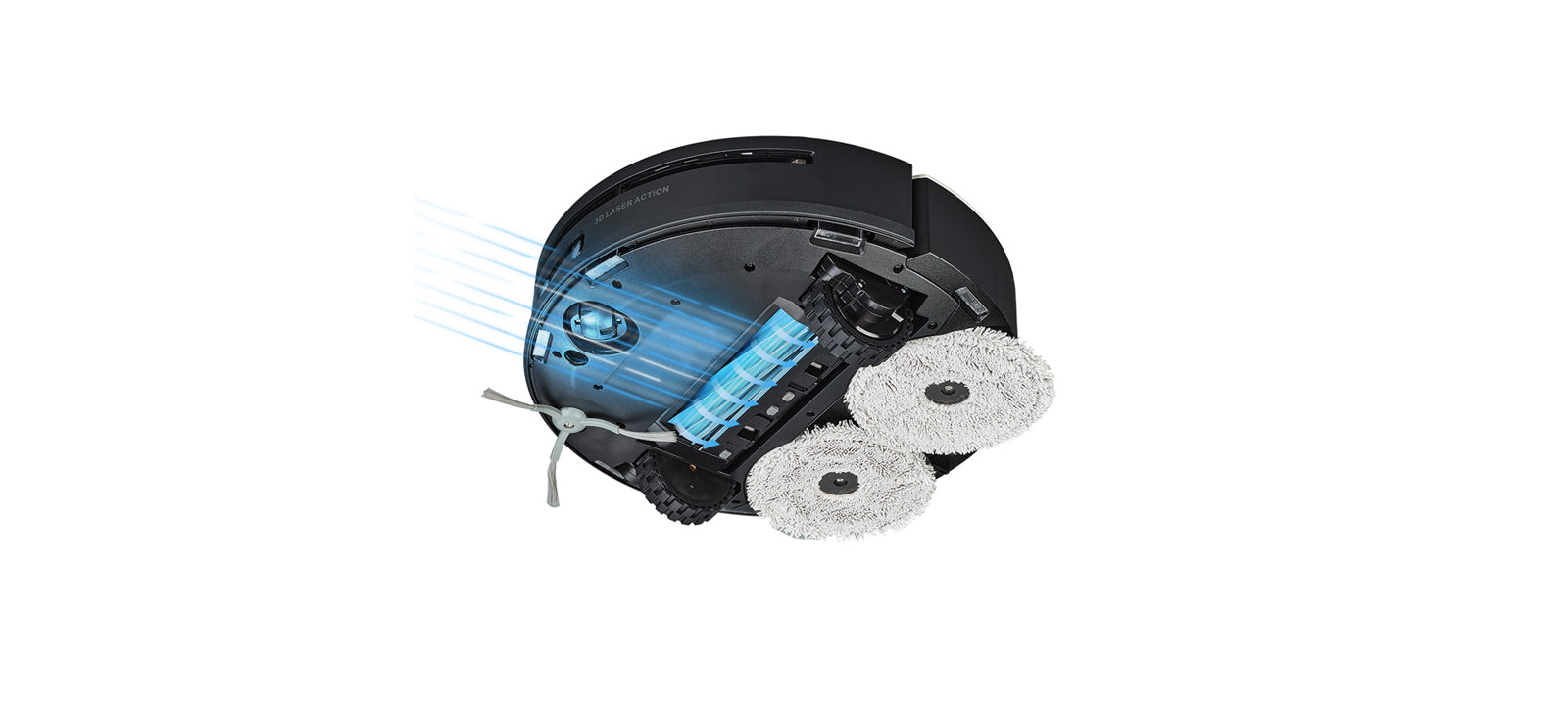 Quando rileva un tappeto, solleva automaticamente i mop fino a 15 mm dal pavimento e attiva l'aspirazione turbo.