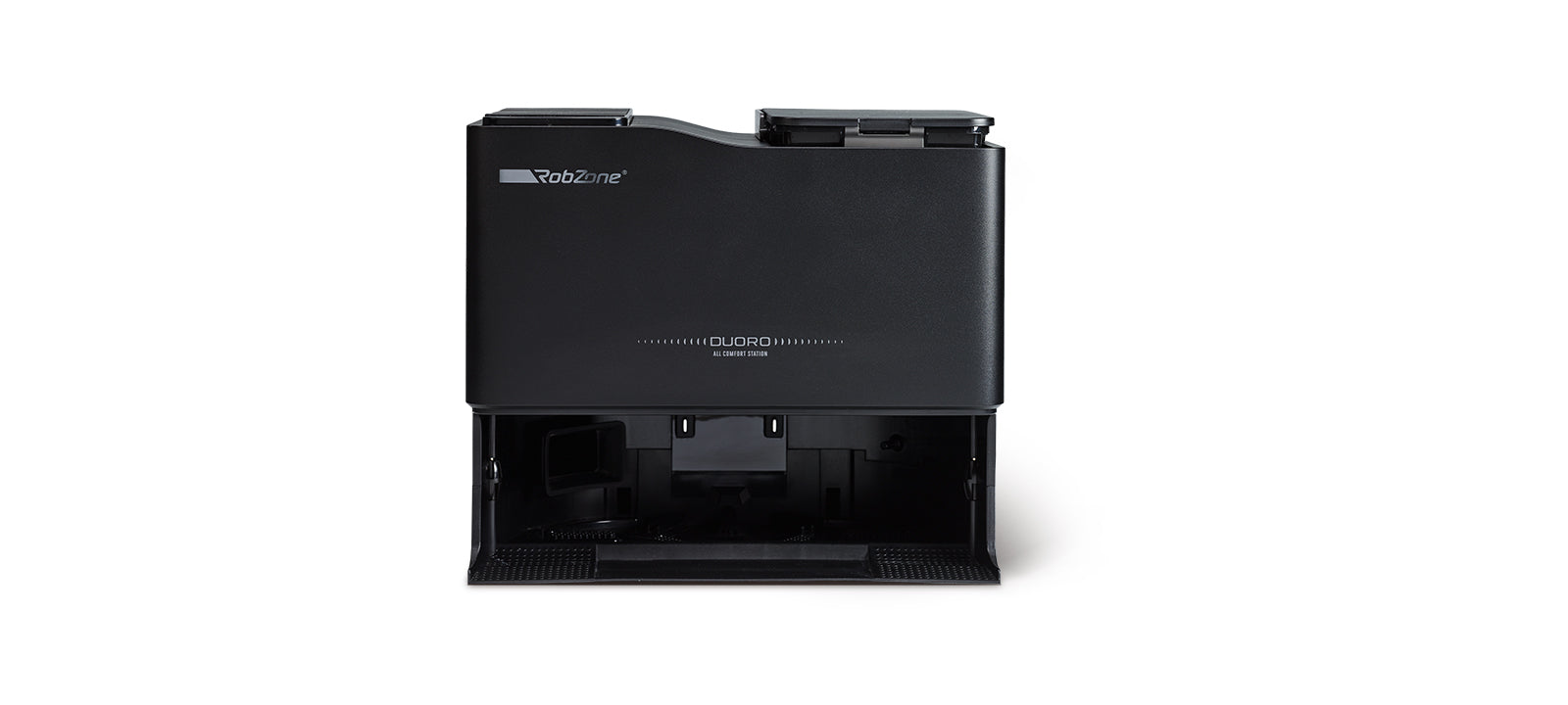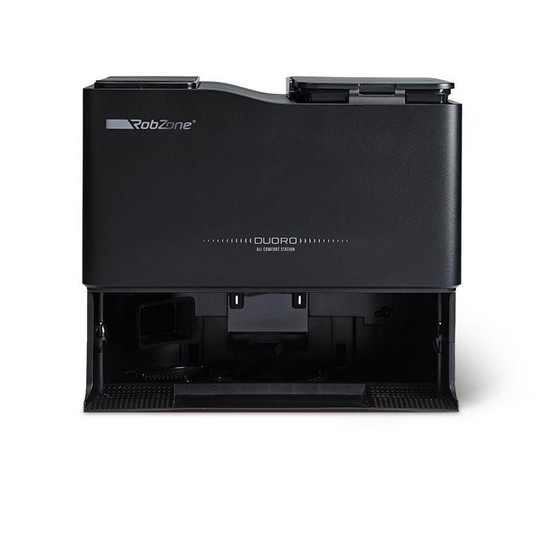 Una stazione elegante e compatta che contiene serbatoi per l'acqua pulita e sporca, oltre a un sacchetto per la polvere che può contenere fino a 7 settimane di sporco aspirato.
