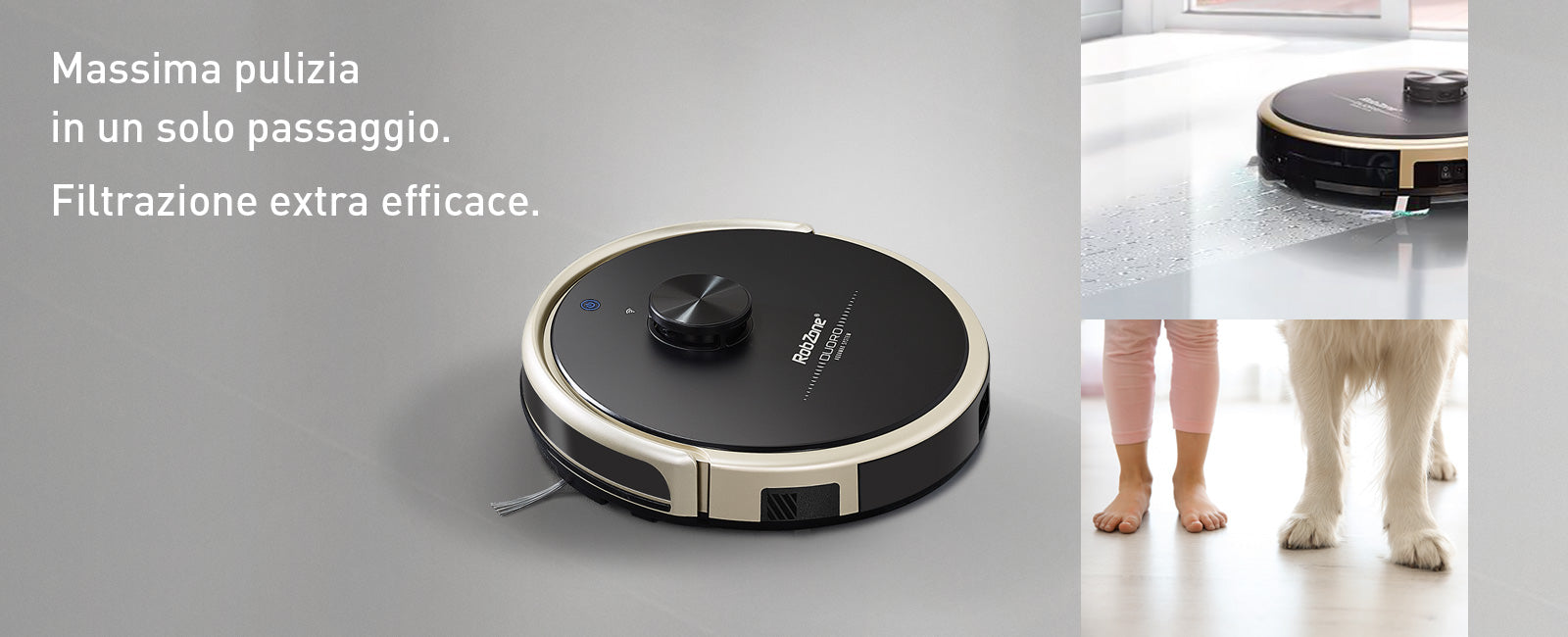Grazie alla precisa navigazione laser, il robot mappa l'intero spazio domestico. La mappa completa, inclusi tutti gli ostacoli, viene disegnata nell'applicazione, dove è possibile modificarla. I sensori ultrasensibili a ultrasuoni e i precisi sensori a infrarossi gli permettono di rilevare ostacoli imprevisti e complessi.