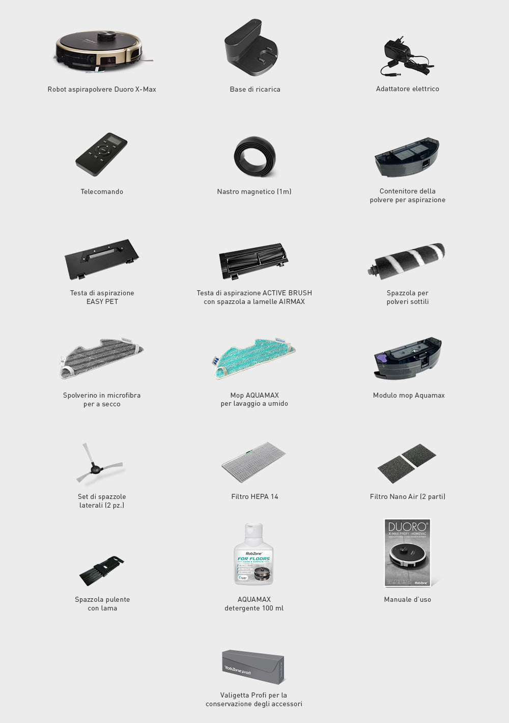In ogni casa, ogni giorno, si deposita sul pavimento una polvere microscopica e fine, che si solleva nell'aria e si accumula in quei batuffoli di polvere che tutti conosciamo bene. Il Duoro X-Max elimina proprio questa polvere dannosa per la salute. Grazie all'utilizzo di una speciale spazzola per la polvere con fibre antistatiche, il pavimento sarà perfettamente pulito.