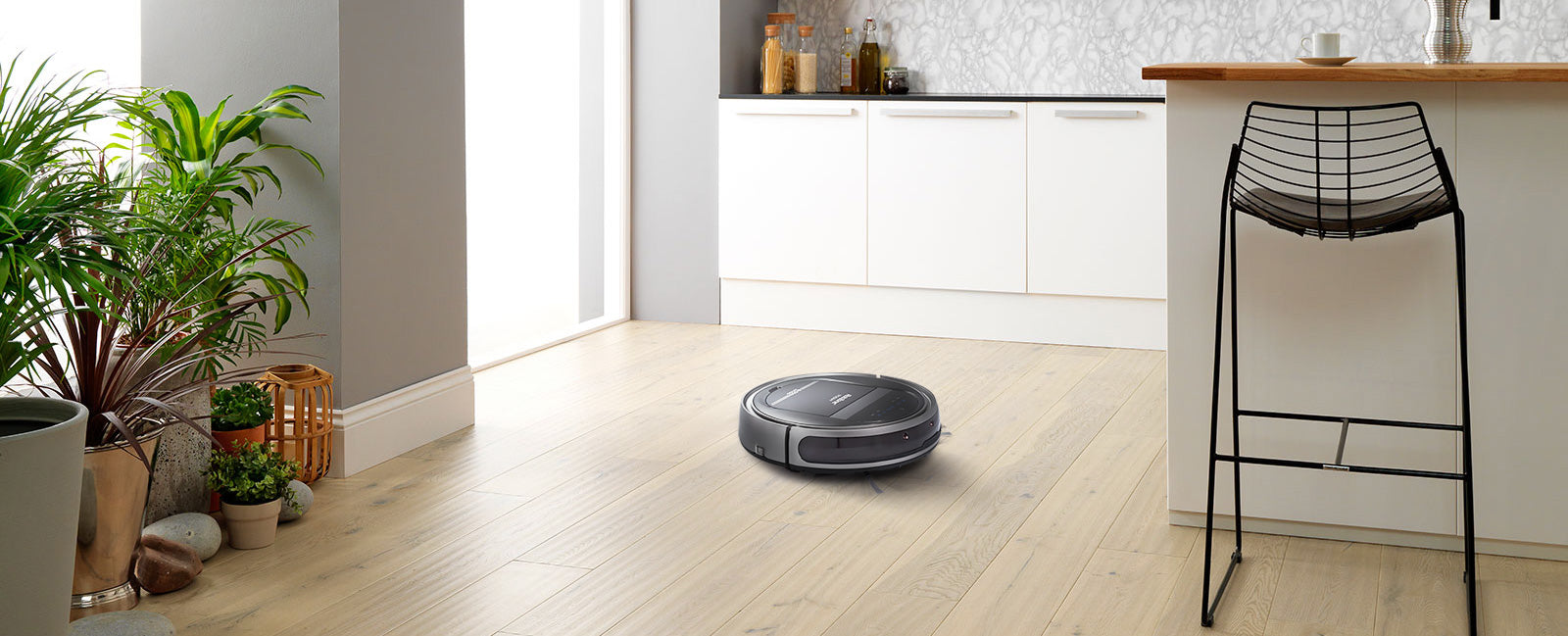 Roomy Solo aspira le briciole e allo stesso tempo spazza via la polvere su qualsiasi pavimento liscio. Scegliendo l'aspirazione con pulizia a secco, ridurrai significativamente la polvere in tutta la casa.